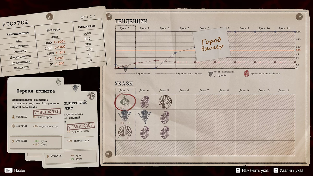 Для успешного спасения города-на-Горхоне от чумы в Pathologic 3 Даниилу Данковскому предстоит лично возглавить власть. После передачи рычагов управления бакалавр открывает собственную управу в Омуте, и у вас появится возможность выпускать указы против заразы. В этом гайде перечислены все доступные указы и описаны способы их открытия 📋
