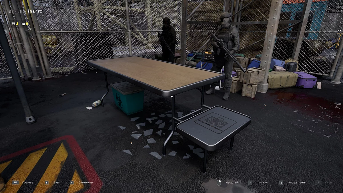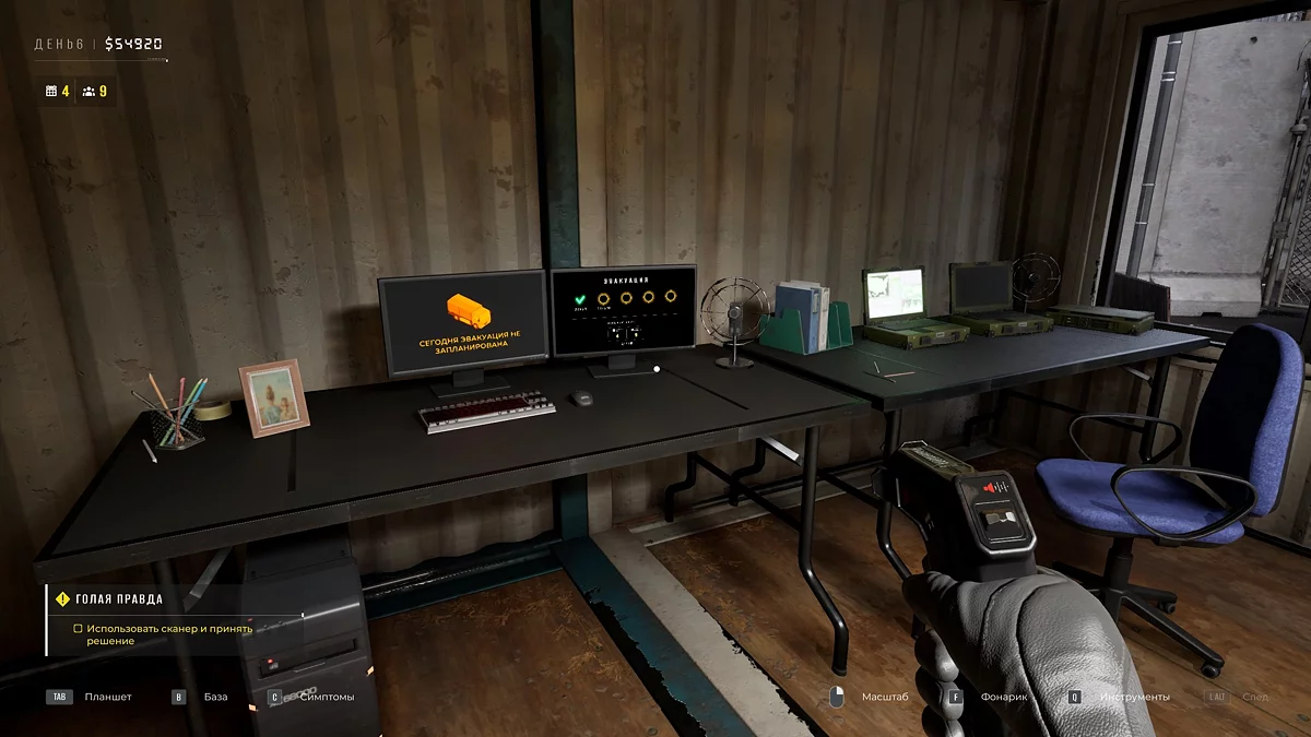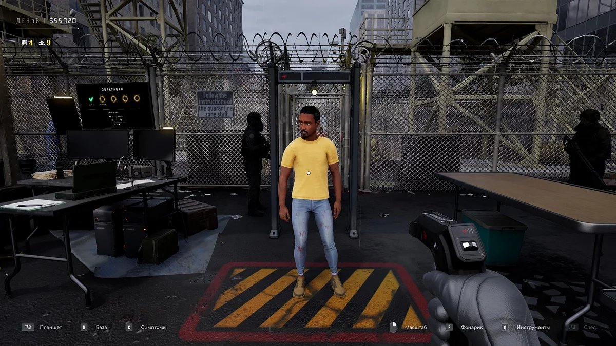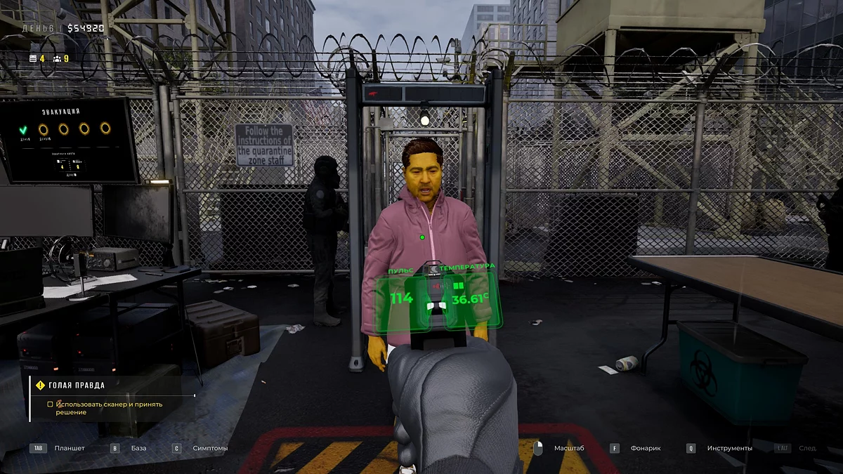 В ежедневном отчёте появится вкладка «Эвакуация» с данными о жертвах и количестве отправленных или оставшихся выживших. Закупите топливо для генератора, загляните в карантин. Возьмите у напарника сканер, позволяющий просматривать сквозь одежду. В разделе «Внешность» откроются новые симптомы: