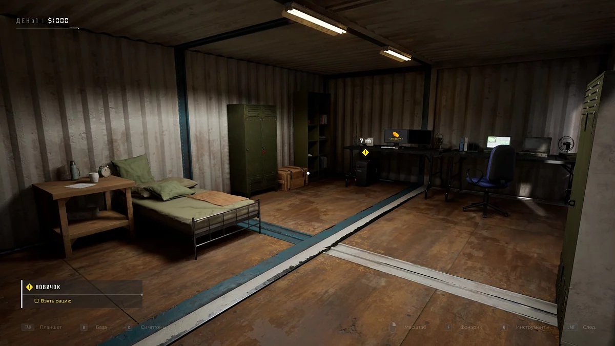 Сразу после вступительной катсцены действие начинается в палатке героя. Здесь стоит кровать, через которую завершается смена — так происходит переход между сюжетными главами. Для начала возьмите со стола рацию: через неё майор будет выдавать все последующие инструкции.