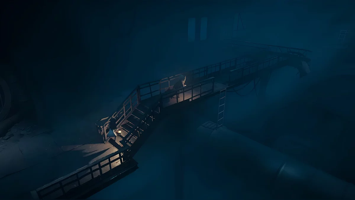 Идите по мосткам в левую сторону. Воспользуйтесь лестницей, чтобы подняться ещё выше. Подойдите к решётке. После короткой кат-сцены спрыгните на большую трубу справа.