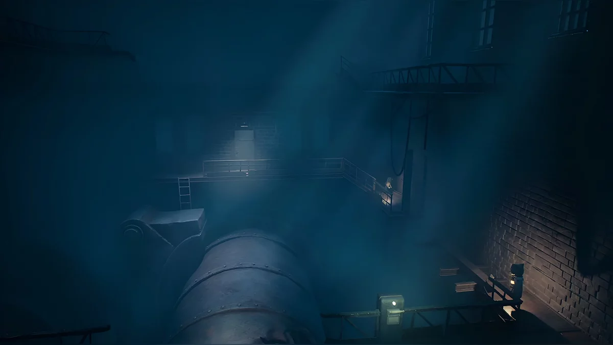 Если второй игрок или персонаж, которым управляет компьютер, не успел, вы можете воспользоваться вторым тумблером. Он расположен по другую сторону от вентилятора. Оба персонажа должны взяться за ручки люка, чтобы открыть его. Спускайтесь вниз, включите фонарик и бегите вперёд. У решётки нужно будет присесть, чтобы пройти дальше. Затем поднимайтесь по лестнице. Подойдите к большим воротам и обратите внимание на уступ слева. Один игрок должен подсадить другого — так вы сможете на него забраться.