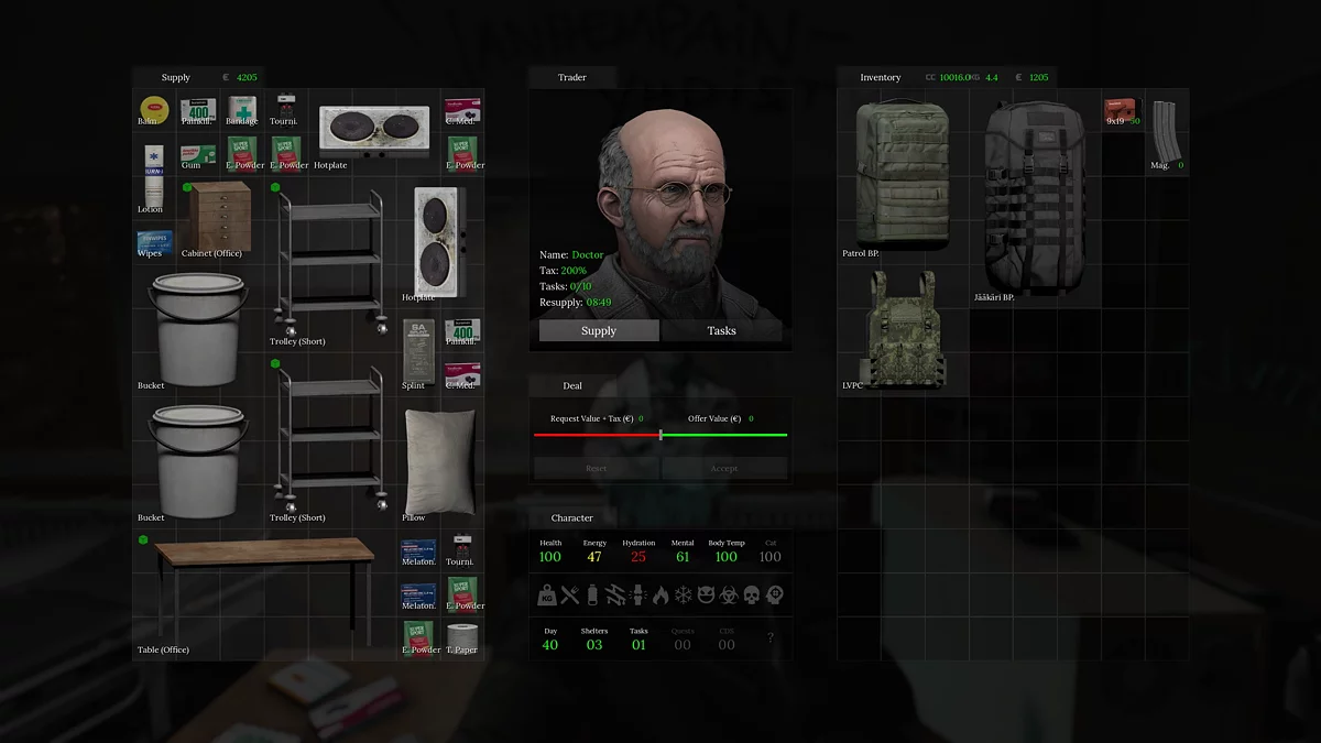 Доктор становится особенно нужен после первых опасных рейдов, когда вам регулярно требуются медикаменты, контейнеры и средства для лечения негативных эффектов.
