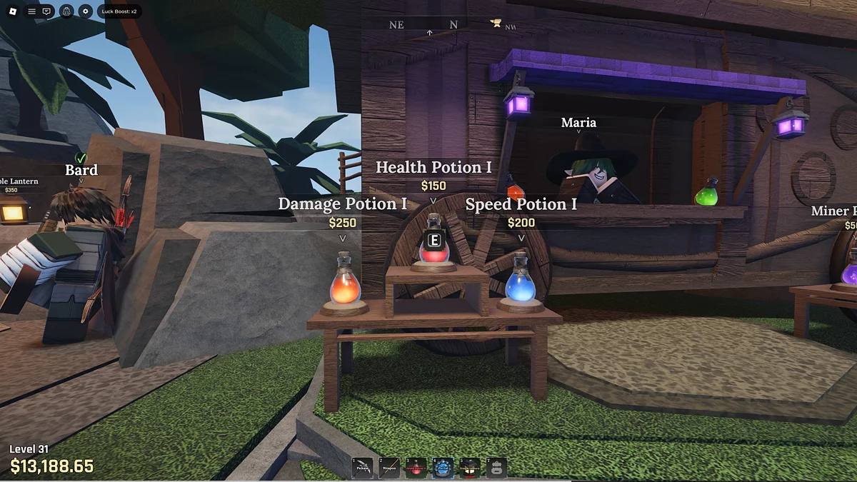 Чтобы раздобыть нужное зелье, воспользуйтесь порталом и переместитесь в Перепутье Стоунвейка 🌀. В центральной части локации, слева от кузни и сенсея Моро, находится лавка зелий Марии. Там можно купить лечебное зелье первого уровня. Оно в красной бутылке и стоит всего $150 💰. После покупки вернитесь через портал в Забытое королевство.
