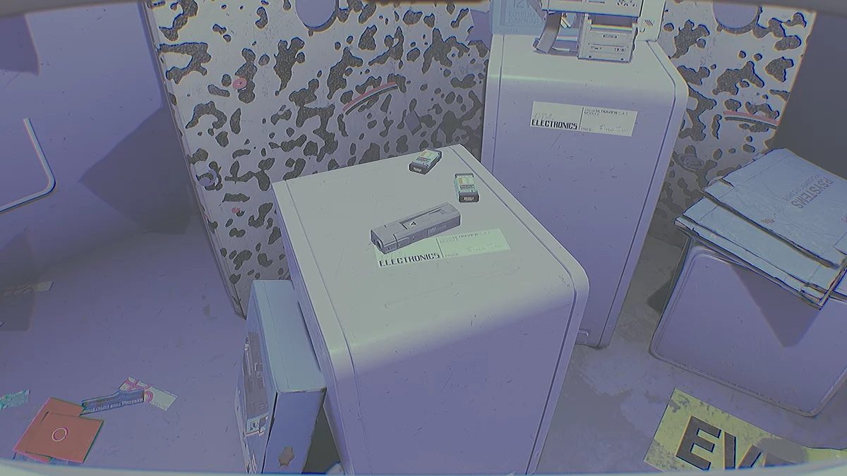 При необходимости сохранитесь в подсобке за стеллажами и проверьте модуль в деле. Попытка выйти из комнаты приведёт к закрытию двери. Чтобы всё вернуть, подойдите к терминалу подсобки и выберите «Клавиатура».