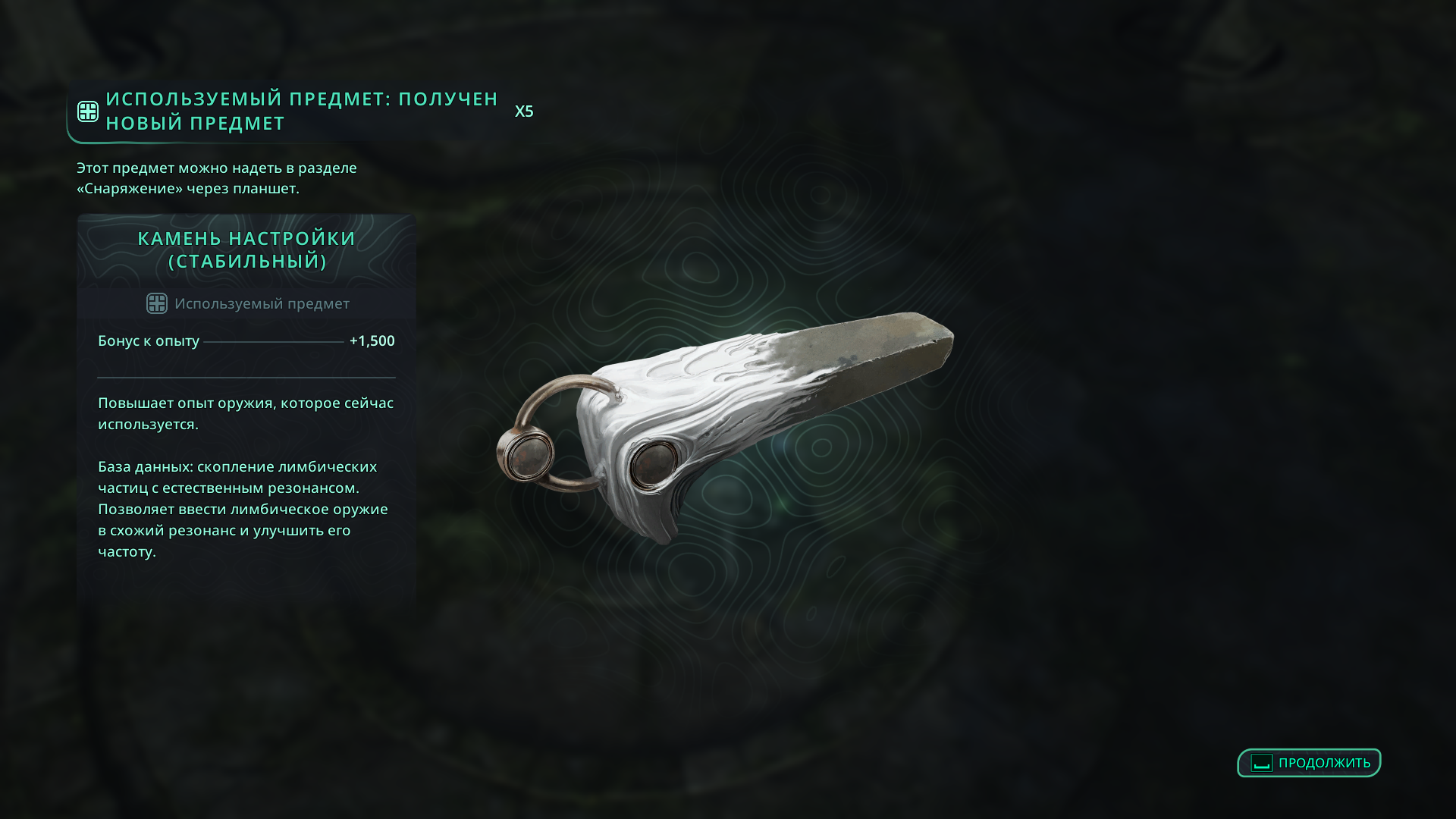 В дополнение вы получите полезный расходник — камень настройки (стабильный), увеличивающий получаемый опыт оружия на +1,500. 💎