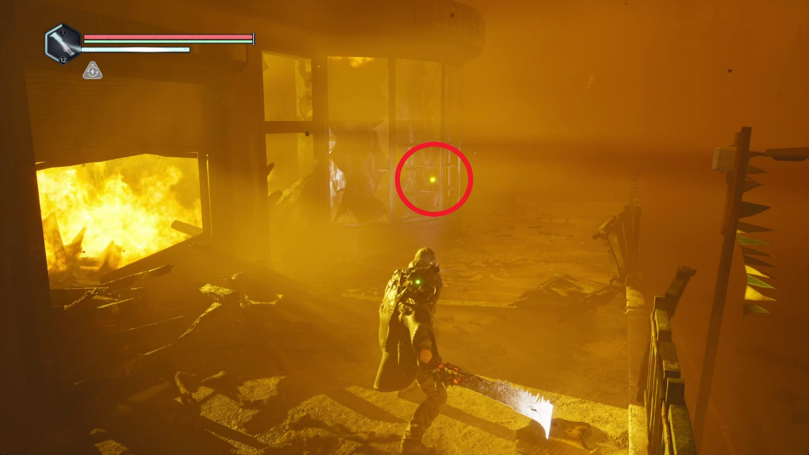 В указанном районе найдите пылающее здание и зайдите к нему с фасада. 🔥