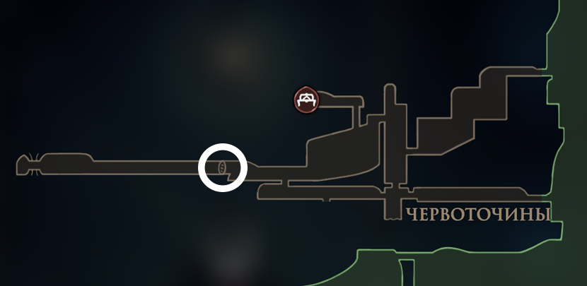 Это самый ранний Ткачедом, к которому можно попасть уже в самом начале. От стартовой точки опуститесь вниз и направляйтесь вправо, пока не заметите дверь с паутинным узором. Внутри расположена небольшая зона с отдельным чекпоинтом и механизмом в центре. Активируйте его, чтобы заполучить карту Ткачедома Атла.