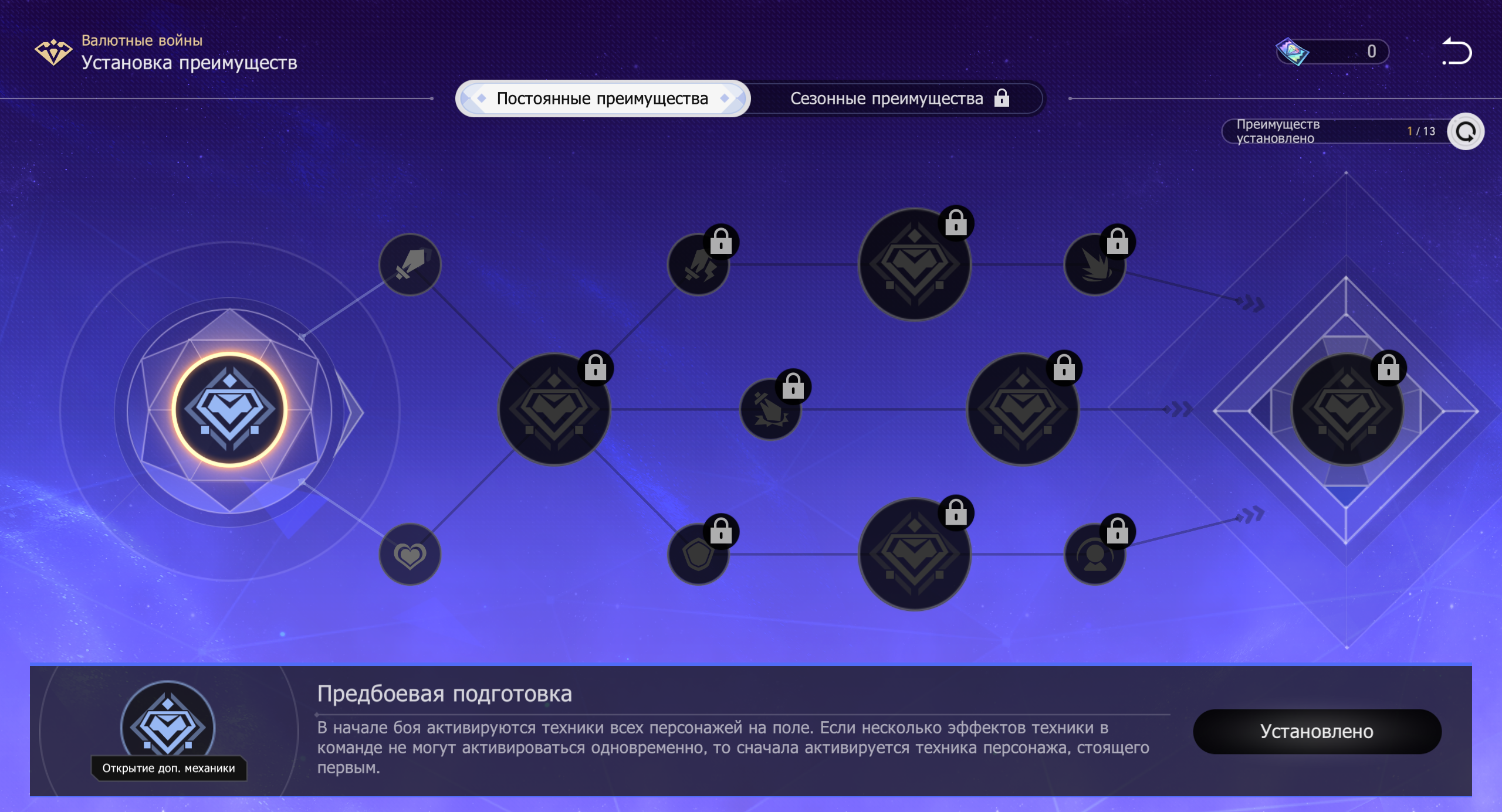 За успешное завершение забега вы получаете равноценные алмазные банкноты — особую валюту для развития древа умений. Это древо называется конфигурацией преимуществ.