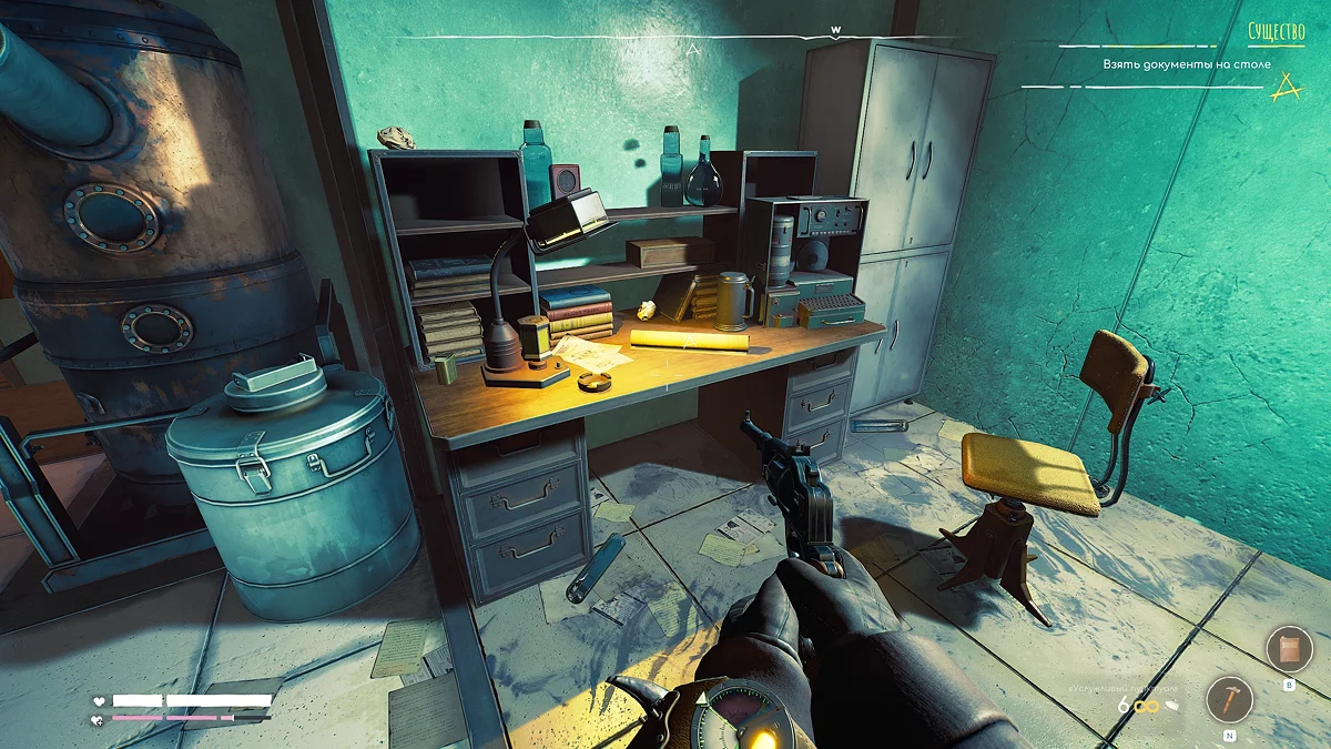 Получив соответствующее уведомление на экране, пройдите в небольшую лабораторию слева от поезда. Внутри подойдите к столу и заберите документы.