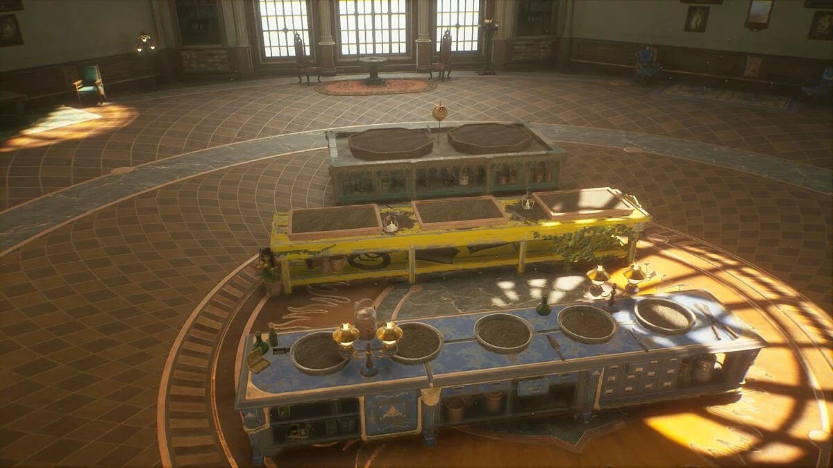 В выручай-комнате можно поставить максимум 7 стендов для зелий. Они не автоматизированы — каждую варку нужно запускать вручную. Крупный стенд позволяет готовить по 3 зелья одновременно.