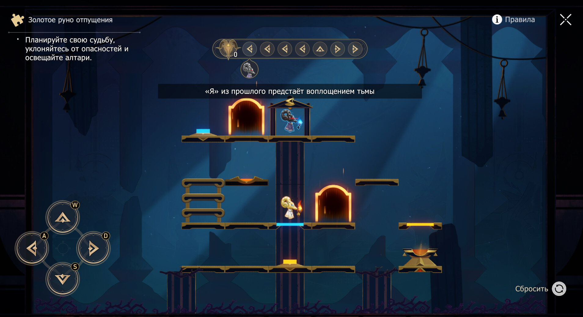 3. В третьем испытании доступно шесть ходов — пять раз влево и один вверх. Появится Я из прошлого, после чего просто двигайтесь вправо до упора.