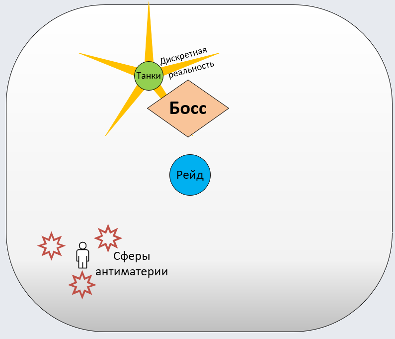 - танк, который находится в активной позиции, должен держаться в стороне от рейда, чтобы игрокам было проще уклоняться от лучей «Дискретная реальность»;