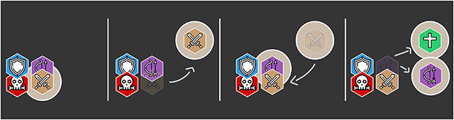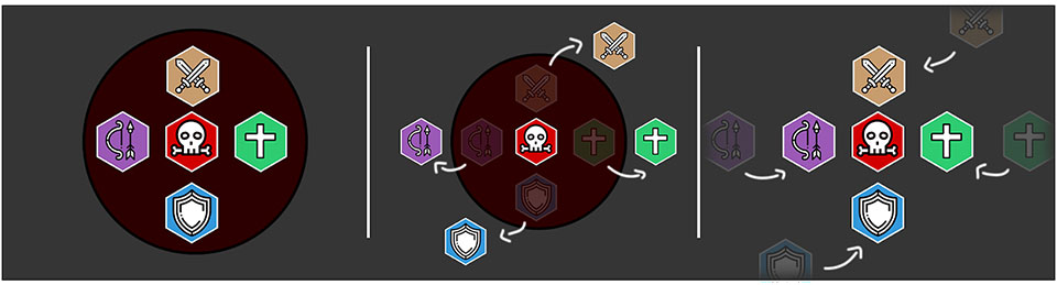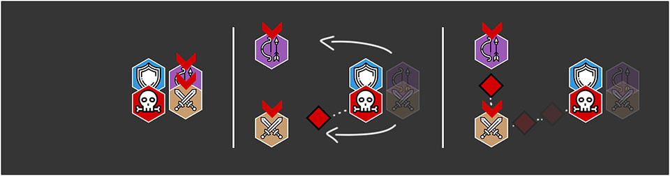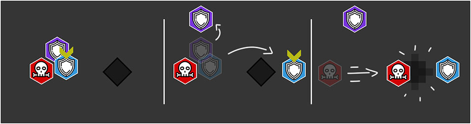 Время от времени у двух игроков над головами появляться красные стрелки, им нужно будет перебежать на противоположную сторону активного босса. Урон от клинков босса Кааль будут наносить урон рикошетом.