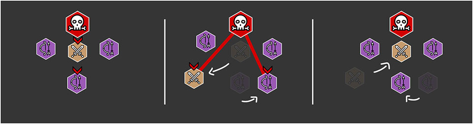 - после фронтальной атаки, появляются монстры, которых игрокам нужно быстро убивать