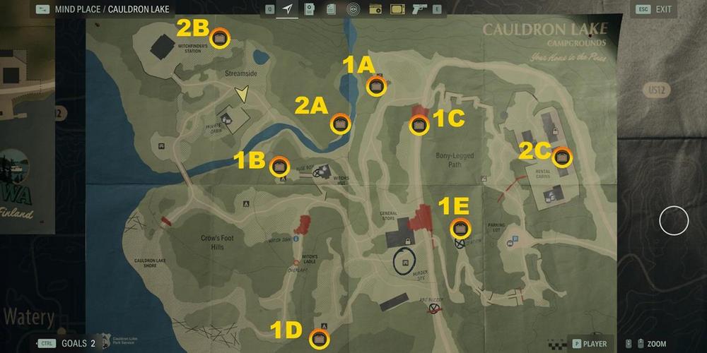 Первый набор: 1A до 1E — Ланч-боксы в Alan Wake 2 можно найти в ходе первой главы Саги "Возвращение" 1: Приглашение, а также в последующих главах по возвращении в локацию Озеро Колдрон.
