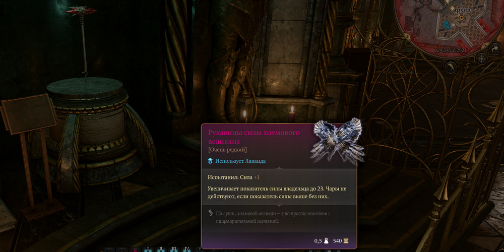 Иной подход включает прохождение проверки на Убеждение, где вы в обмен на её услуги, обязуетесь доставить ей ценный артефакт — Рукавицы Силы Холмового Великана.