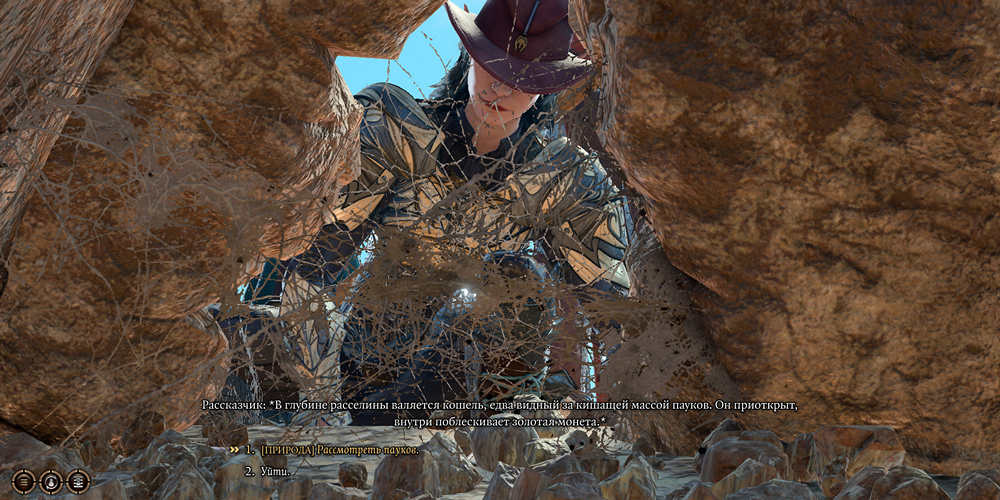 Варианты действий в проверках будут зависеть от класса вашего персонажа. Если в вашей команде присутствует Астарион, его навык в Ловкости рук может пригодиться для извлечения кошеля. В случае успеха, вы сможете забрать Кокон с паучьими яйцами.
