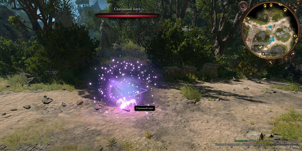 Если говорить о местоположении, Кокон с паучьими яйцами можно найти на юго-западе Рощи Друидов.
