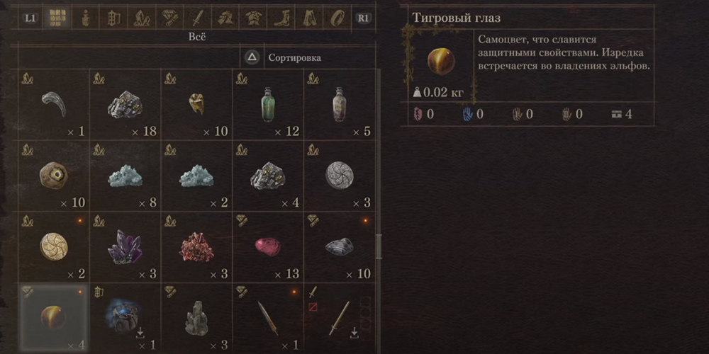 Тигровый глаз: Высоко ценится во владениях эльфов.