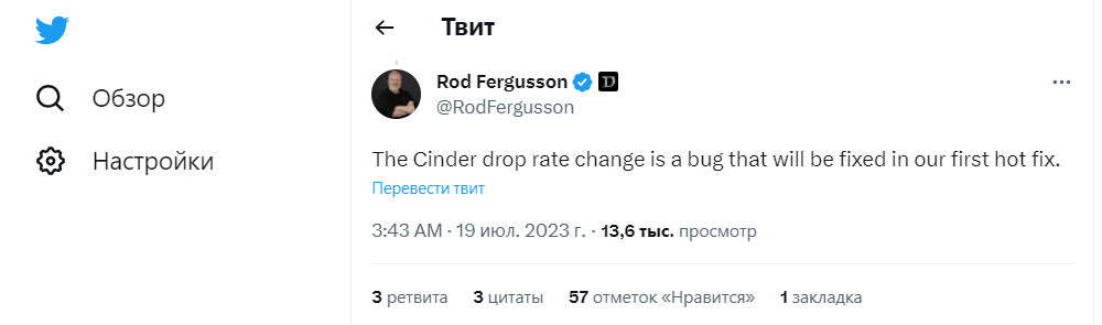 После первого крупного обновления в Diablo IV, которое увеличило сложность Адских волн, включая повышение стоимости открытия сундуков — Mystery Chests, игроки заметили резкое снижение выпадения Аберрантной золы. Род Фергюссон, генеральный менеджер Diablo, подтвердил в своем посте в твитере, что низкий уровень выпадения является ошибкой, которая будет исправлена в следующем хотфиксе.