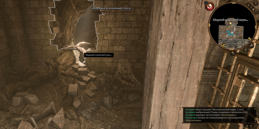 Игрокам важно стараться спасти как можно больше заложников. Особое внимание следует уделить комнате к западу от входа, где находятся шесть заключённых, разделённых на две группы по три человека. Также, в комнате появления сахуагинов, на противоположной стороне расположен ещё один заключённый. Кроме того, необходимо спасти Омелуума, дружелюбного иллитида, с которым игроки могли встретиться ранее в Колонии Миконидов в Подземье. Он находится в юго-восточной части за затопленным коридором. Для его освобождения достаточно направить одного персонажа. У Омелуума есть способность мгновенной телепортации к подводному судну, которой он воспользуется после освобождения. Также стоит обратить внимание, что Омелуума может и не оказаться в заключении, если в первом акте вы приняли решение передать Яйцо Гитьянки Леди Эстер. Ведь гитьянки, вылупившийся из этого яйца, истребил всех обитателей Сообщества, среди которых был и Омелуум.