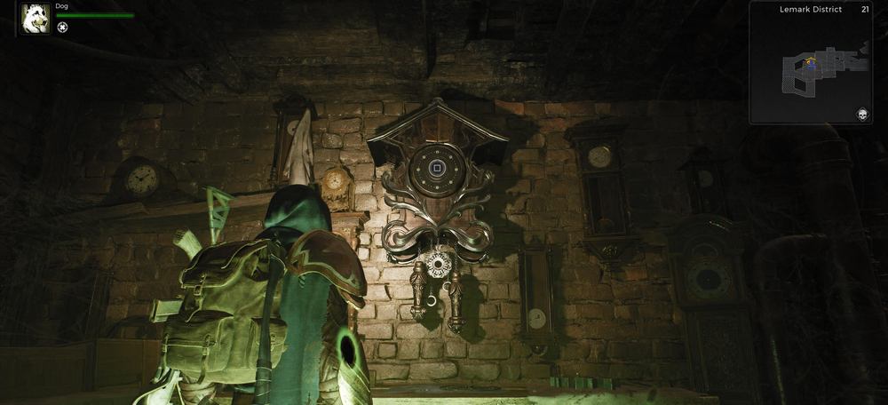 Lemark District — это небольшая зона, которая ведет вниз к комнате, полной часов. На задней стене находятся специальные часы, время на которых вы можете установить. Для завершения головоломки необходимо отрегулировать обе стрелки так, чтобы они указывали на заданное время.
