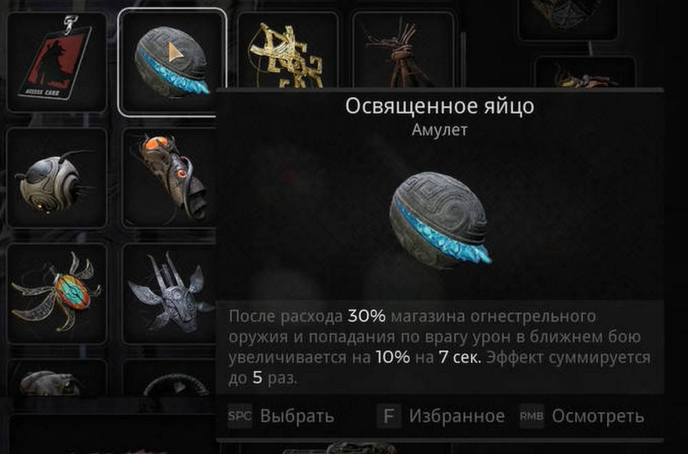 Амулет Освященное яйцо идеален для игроков, предпочитающих динамичное сражение, где стрельба сменяется рукопашным боем. Особенная эффективность проявляется у Архетипа Стрелок (Gunslinger), которому этот амулет наилучшим образом подходит.