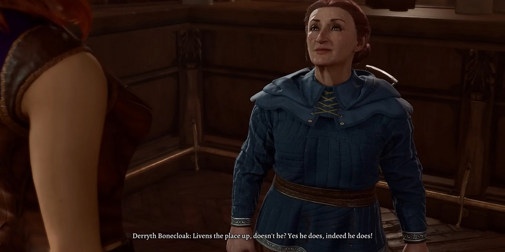 В конце первого акта, когда главный герой и его отряд исследуют Подземье, перед переходом ко второму акту, они встретятся с Деррит и её мужем Баэленом Костяным Плащом. Деррит дает квест на поиски Баэлена, тот в свою очередь в попытках собрать редкий Доброгриб для Деррит оказывается в опасной ситуации, окруженный грибами со взрывоопасными спорами. Эти аптекари из Врат Балдура находится в отчаянном положении, нуждаясь в Доброгрибе для своего магазина, страдающего от финансовых затруднений, вызванных расточительностью Баэлена. Поиск Доброгриба оказывается самым важным моментом в квесте Деррит и играет ключевую роль в судьбе одного из бездомных котов Нижнего города.