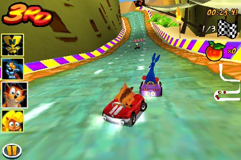 Crash Bandicoot Nitro Kart 3D - трехмерные гонки по двенадцати захватывающим трассам. Бандикут сражается со своими соперниками, используя 8 видов оружия различной степени травматичности. Управление авто производится при помощи вращения и поворотов игровой платформы.
