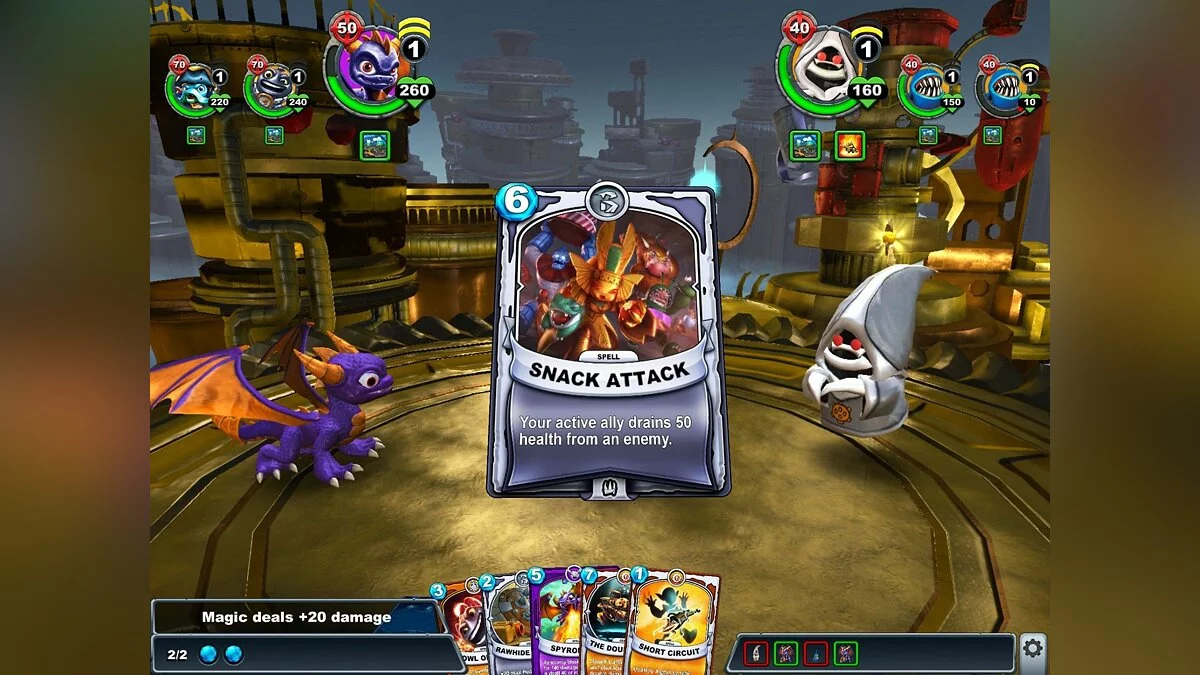 Геймплей Skylanders Battlecast мастерски балансирует на грани простоты и глубины, делая её идеальной как для новичков, так и для опытных любителей жанра. Вы собираете колоду из карт персонажей, заклинаний и предметов, чтобы вступить в динамичные пошаговые сражения один на один. Цель проста: уничтожить все боевые единицы противника или нанести урон его главной базе. Но не думайте, что это "Хардстоун для малышей" — здесь есть свои изюминки! У каждой карты есть уникальные способности, комбо и синергия, которые позволяют выстраивать невероятно хитрые стратегии. А благодаря функции сканирования реальных карт через камеру вашего смартфона, вы буквально превращаете свой обеденный стол в поле боя, где ваши цифровые воины оживают в 3D. Это как если бы Покемоны внезапно решили, что им тесно в шарах, и перешли на более зрелищный формат!