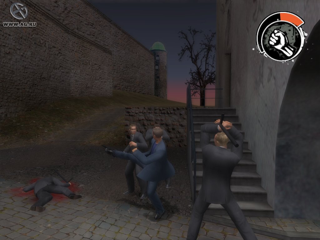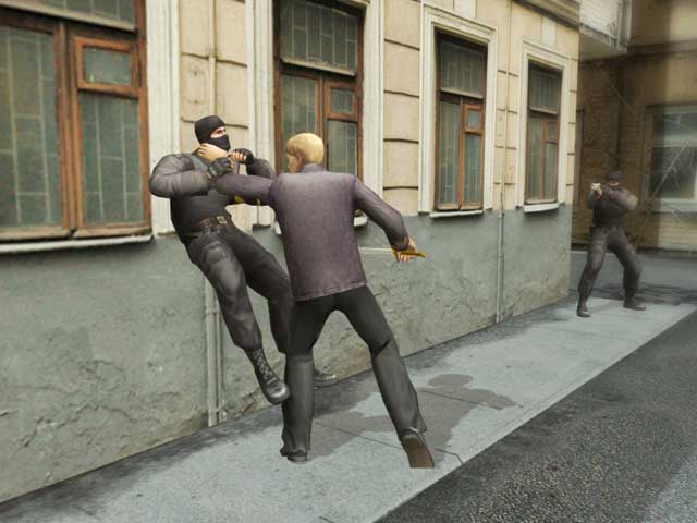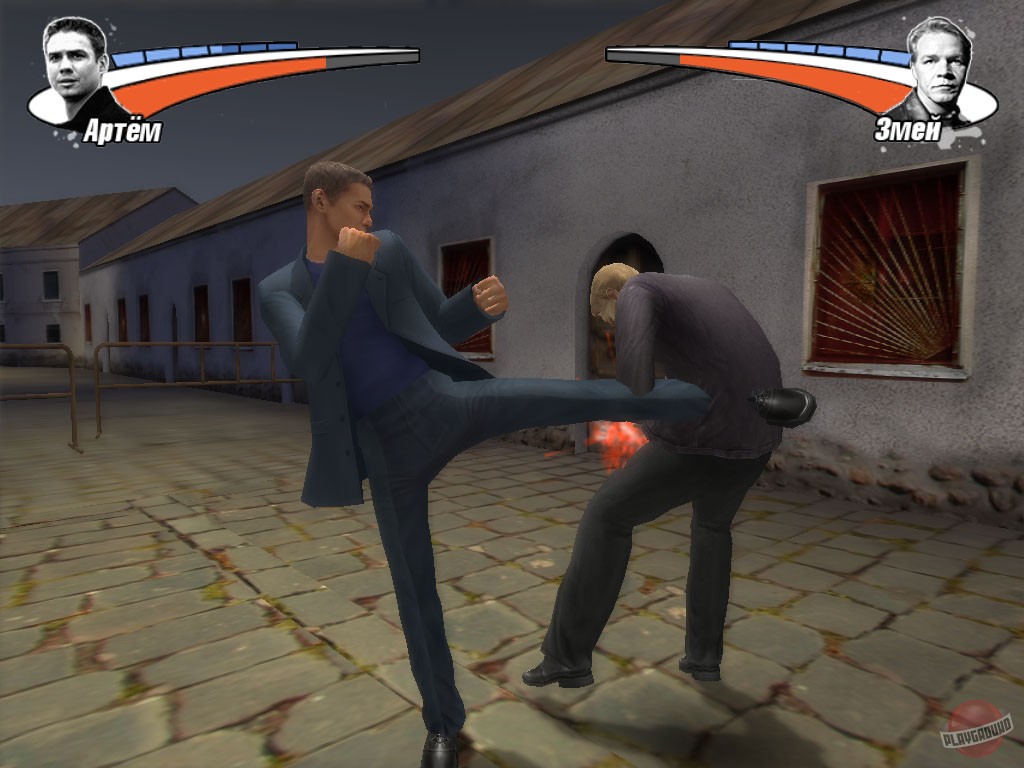 Бой с тенью - аркадный экшен по мотивам одноименного фильма. Игроку предстоит посетить знакомые по фильму локации, избивая на каждой из них толпы противников (охранников, милицию и прочих подвернувшихся под горячую руку персонажей), чтобы в конце устроить потасовку с главным злодеем игры/фильма киллером "Змеем".