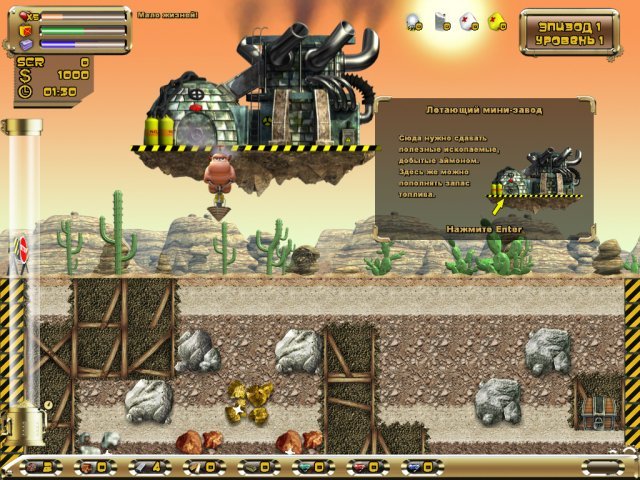 Геймплей Аймоны. Диггер — это идеальный микс простоты и азарта. Ваша задача — исследовать многоуровневые подземные лабиринты, убирая блоки под ногами и собирая все ценное, что блестит. Но будьте осторожны: планета не так уж и безлюдна! Вас будут преследовать бездушные роботы-охранники, которые явно не читали устав «Доброго соседства». Вам придется использовать всю свою смекалку и ловкость, чтобы их обхитрить, ведь прямая конфронтация — не всегда лучший выход. К счастью, в шахтах можно найти полезные бонусы, которые помогут вам либо ускориться, либо временно стать неуязвимым для этих железяк. И помните: даже самый отчаянный диггер должен периодически выбираться на поверхность, чтобы подзаправиться и перевести дух, иначе рискуете остаться здесь навечно в качестве нового минерала!