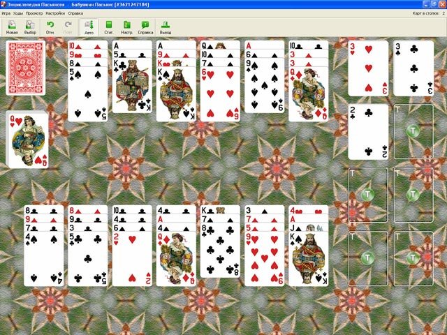 "Энциклопедия пасьянсов. Том 2" - сборник пасьянсов, где есть правила к 100 видам этой карточной игры, включая оригинальные версии. Игрок отслеживает свои успехи по статистике и считает набранные очки. В меню есть возможность сортировки и поиска нужной раскладки.