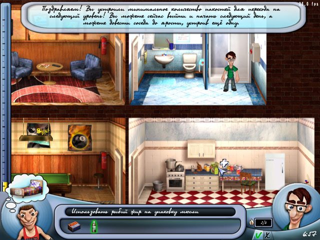 Особенности Как достать студента. Переполох в общаге делают ее идеальным антистрессом для всех, кто хоть раз жил в коммуналке или общаге. Игра щедро снабжена забавными мини-играми, например, вам придется удерживать предмет в центре круга, чтобы не спалиться, — механика, знакомая фанатам серии «Как достать соседа». Графика, хоть и не претендует на звание шедевра, радует яркими цветами и комичными анимациями персонажей, чьи реакции на ваши проделки вызовут у вас смех до слез. Это не просто игра, а настоящая симуляция студенческой мести, где каждый клик — шаг к свободе от надоедливого соседа.