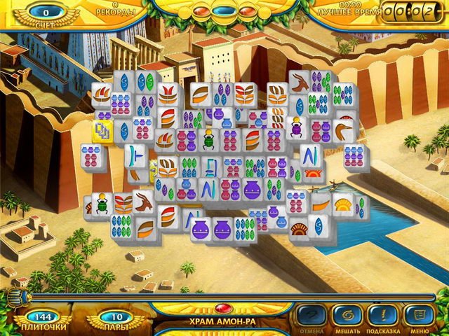 Геймплей классического маджонга здесь доведен до совершенства: ваша задача — находить и убирать с игрового поля пары свободных (не заблокированных другими фишками) одинаковых плиток. Звучит просто? Попробуйте сделать это на сложном уровне, когда расклад напоминает не храм, а скорее склад строительных материалов после землетрясения! Игра щедро одаривает игроков атмосферой: вас окружают египетские иероглифы, золотые саркофаги и мистическая музыка, которая мягко нашептывает: "Ты справишься... или нет?". Особенности игры включают в себя несколько уровней сложности, возможность менять фон для комфорта ваших глаз и, конечно же, систему подсказок для тех моментов, когда вы уже готовы заключить сделку с самим Анубисом, лишь бы найти последнюю пару.