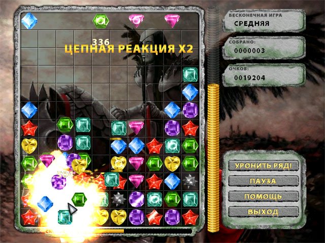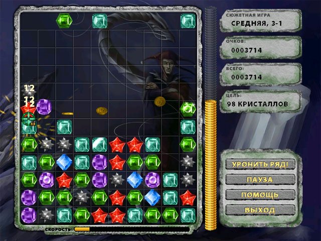 Геймплей Магического кристалла прост, как пирожок, но увлекателен, как сериал, который невозможно остановить. Ваша задача — передвигать яркие минералы и драгоценные камни по игровому полю, чтобы выстраивать цепочки из трех или более одинаковых элементов. Как только вы это делаете — бац! — они исчезают в облаке магической пыли, освобождая место для новых самоцветов, которые падают сверху. Каждая успешная комбинация приближает вас к победе в уровне и помогает собрать все потерянные кристаллы. Это идеальная смесь стратегии и расслабляющего геймплея, которая отлично тренирует логику и реакцию. Вы можете играть в режиме на очки, пытаясь установить рекорд, достойный попадания в Книгу Гиннеса (ну, или хотя бы в список ваших друзей), или выбрать сюжетный режим, чтобы исследовать новые локации и раскрывать тайны мира.