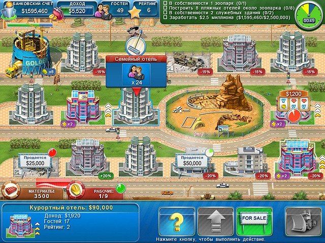 Ваш путь к вершине начинается с простого: найдите самый выгодный клочок земли в этом городе, где даже песчинки стоят целое состояние. Постройте свой первый отель, обставьте его так, чтобы даже Джеймс Бонд захотел там остаться на выходные, и начните раскручивать своё заведение. В Магнат отелей. Лас-Вегас вы не ограничены лишь спальными номерами и баром. Мечтаете о гигантском аквариуме с акулами в лобби? Пожалуйста! Хотите, чтобы ваши гости могли кататься на американских горках прямо над казино? Без проблем! Игра предлагает огромное разнообразие объектов: от милых кафешек и суперсовременных кинотеатров до целых зоопарков и горнолыжных курортов посреди пустыни. Да-да, вы не ослышались — создайте такой уникальный курорт, чтобы туристы забыли дорогу домой!