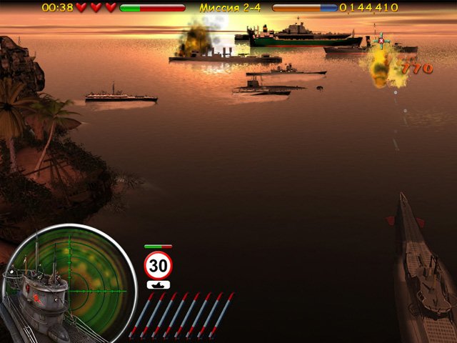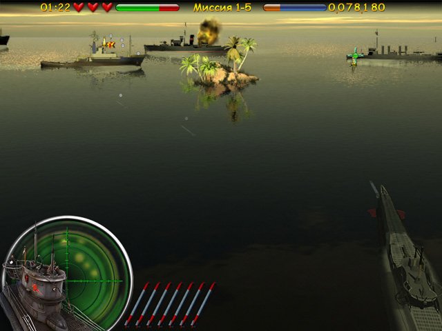 Геймплей Морской бой. Подводная война — это идеальный микс тактического планирования и экшен-стрельбы. Ваша миссия — поражать корабли противника, но не всё так просто, как кажется. Крупные боевые единицы, такие как эсминцы и авианосцы, держатся на безопасном расстоянии от берега, что делает их сложной, но очень ценной целью. Вам предстоит просчитывать траекторию движения, глубину погружения и скорость ветра (ну, или хотя бы прикидывать, куда лучше выстрелить), чтобы ваши торпеды не просто попали в воду, а нашли свою жертву. Каждый успешный залп приносит очки, которые необходимы для прохождения уровня, а значит, вам придется быть не только метким, но и экономным в расходе боеприпасов.