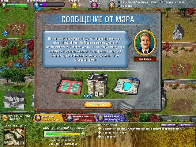 Ваш путь начинается с малого: пара домиков, крошечная лавка и, возможно, одинокая пальма. Но благодаря вашему стратегическому мышлению и умению эффективно распоряжаться ресурсами, вы быстро развернете целую империю. Купите земельные участки под застройку, постройте фабрики, магазины, парки и даже бассейны для счастливых горожан. Геймплей Построй-ка 4. Город солнца — это идеальный микс из планирования, управления временем и решения головоломок в реальном времени. Нужно успеть построить школу, пока дети не начали бунтовать, запустить электростанцию, пока не начался массовый блэкаут, и при этом еще и заработать достаточно денег на следующий проект. Это как одновременно быть архитектором, инженером-энергетиком и мэром, но без стресса (ну, почти).