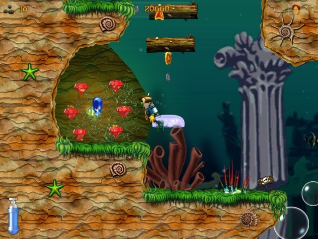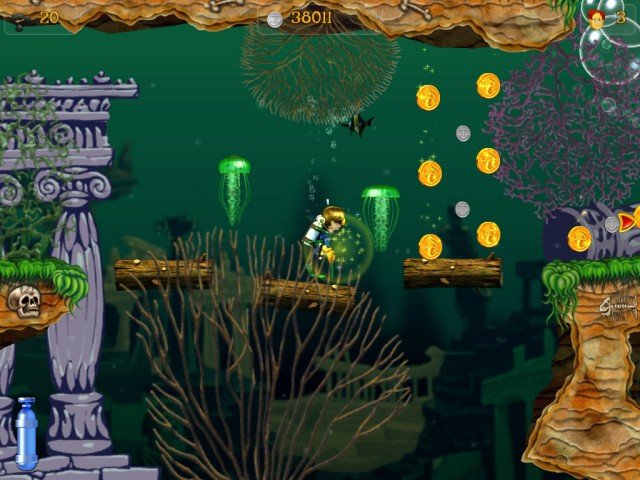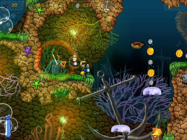 Геймплей в Приключениях Кенни строится на классическом аркадном принципе: исследуй уровень, собирай все необходимые артефакты и старайся не попасться на обед местным хищникам. Вас ждут десятки уровней-лабиринтов, каждый из которых — это новый вызов и новая головоломка. На вашем пути будут ползать, плавать и щекотать своими щупальцами всевозможные морские обитатели: от коварных медуз до грозных осьминогов и зубастых акул. Но не пугайтесь! Несмотря на то, что некоторые отзывы называют игру "в меру страшной", на самом деле она настолько дружелюбна, что вы вряд ли потратите хоть одну жизнь. Это не хардкорный экшен, а увлекательное приключение, где важны ловкость, смекалка и умение вовремя нажать на кнопку прыжка.