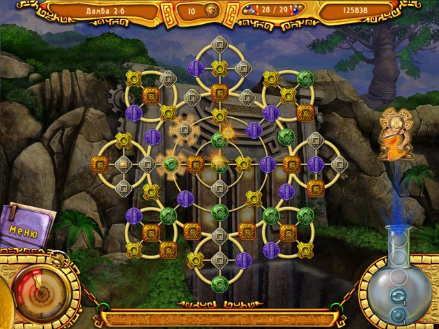 Геймплей Проклятия Монтесумы — это идеальный микс вызова и удовольствия. Ваша задача — собирать цепочки из трех и более одинаковых фишек, которые соединены изогнутыми линиями. Каждое успешное соединение приносит очки и открывает древние руны, ведущие вас к заветному источнику. Но это еще не все! На вашем пути будут встречаться специальные кристаллы внутри фишек, которые нужно собрать для прохождения уровня, а также целый арсенал бонусов и улучшений, способных превратить безнадежную ситуацию в триумфальную победу. С 60 уровнями, раскиданными по 6 живописным локациям, и 14 различными бонусами, скука вам точно не грозит. А еще в игре есть 6 мини-игр, которые разнообразят процесс и дадут вашим извилинам небольшую передышку между основными подвигами.