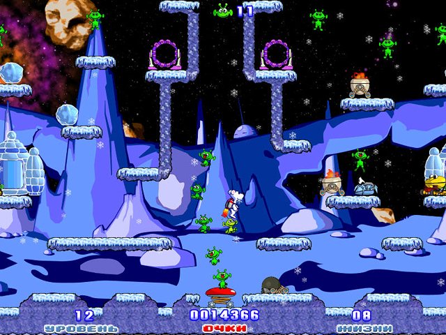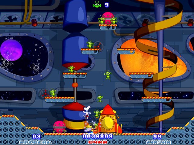 Геймплей Снежок. Приключения в космосе — это чистый, незамутненный экшен для всей семьи. Ваша миссия проста, как инструкция к сборке шведской мебели (но куда веселее): прочесать все уровни космической школы, найти всех испуганных учеников-пришельцев и доставить их к желтой спасательной ракете. Звучит легко? А вот и нет! На вашем пути будут бесконечные полчища взбесившихся роботов-уборщиков, которые явно пересмотрели фильмы про Терминатора и решили, что их новая задача — не подметать, а преследовать. Вам придется прыгать по платформам, ловко уворачиваться от их хваток и, конечно же, метко швырять в них всё, что плохо лежит, особенно те самые мусорные баки. От вашей скорости, реакции и умения быстро принимать решения зависит не только успех миссии, но и судьба целого поколения инопланетных школьников. Это не просто аркада, это проверка ваших навыков родительского инстинкта в условиях невесомости!