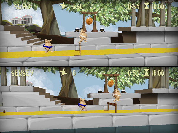 Забудьте про скучные посиделки! Встречайте Сумотоха — аркадную игру для двоих, где ваша дружба пройдет через огонь, воду и, конечно же, через кучу ящиков на шаткой дощатой тропе. Представьте себе: два могучих сумоиста, чьи животы способны затмить собой солнце, вместо того чтобы вежливо толкать друг друга в ринге, устраивают настоящий забег наперегонки! Цель проста — первым добежать до финиша, но путь к славе усеян не цветами, а всевозможными ловушками вроде проваливающихся полов, хлипких мостов и груд непонятно откуда взявшихся коробок. Это не просто игра, это испытание на смекалку, координацию и готовность подставить друга (в буквальном смысле) ради победы!