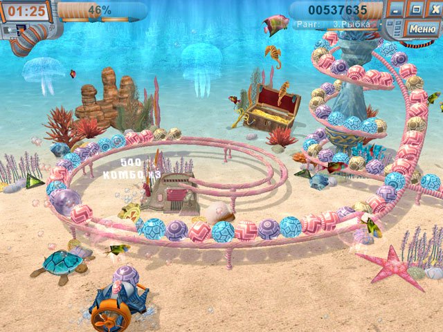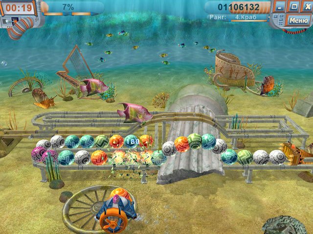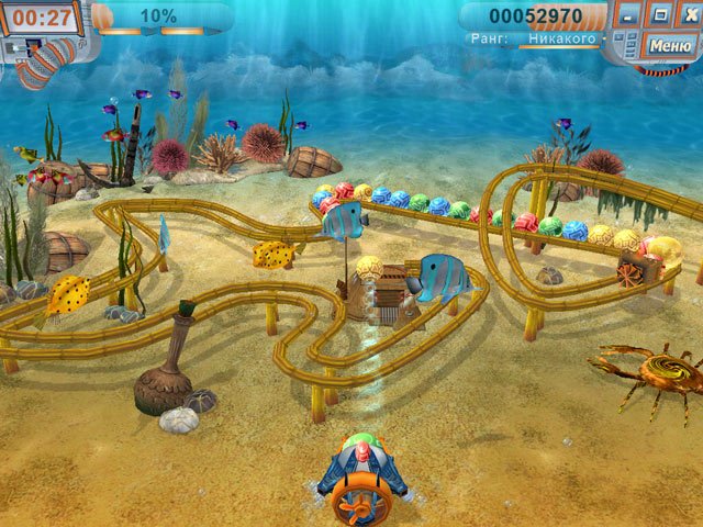 Добро пожаловать в Тайны шести морей — место, где подводный мир превратился в гигантский конвейер по переработке... всего живого! Представьте себе: вы не просто беззаботный дайвер, любующийся кораллами, а настоящий эколог-спасатель с пушкой-пращой наперевес. Ваша миссия? Расстреливать бесконечные цепочки разноцветных мусорных контейнеров, которые зловеще ползут по дну, словно инопланетные захватчики из дешёвого фантастического боевика. И да, внутри этих контейнеров — не старые батарейки и пластиковые бутылки, а невинные обитатели океана: от растерянных осьминогов до философствующих морских коньков. Если вы думали, что «Луксор» был слишком спокойным, то эта аркада точно для вас!