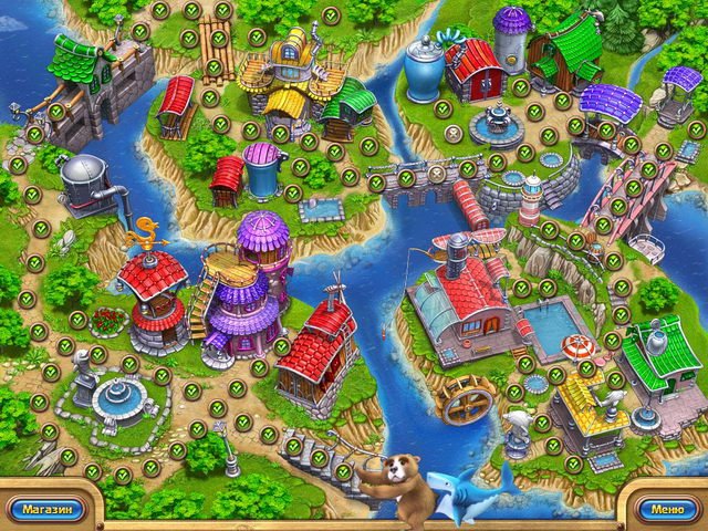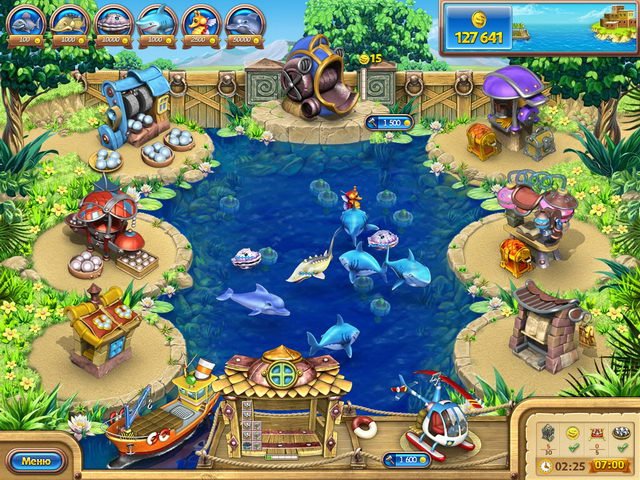 Геймплей Веселая ферма. Рыбный день сохраняет всю динамику и азарт классических тайм-менеджеров, но добавляет свежую морскую соль. Ваша задача — не просто выращивать рыбу, а выстраивать целую пищевую цепочку: от ловли моллюсков и разведения дорогих пород вроде осетра до переработки улова в деликатесы и продажи их через собственные ресторанчики. Каждый уровень — это новая головоломка, где нужно грамотно распоряжаться ресурсами, улучшать производственные здания и своевременно отправлять вертолет с товаром. А еще здесь есть дельфины! Их можно продавать, что добавляет игре дополнительную стратегическую глубину. Главное — не забывайте про медведей: если вовремя не поймать этих незваных гостей, они устроят на вашей ферме хаос, сравнимый с последствиями "Пятницы" Джона Траволты.
