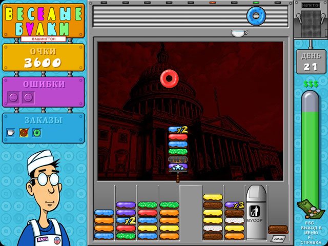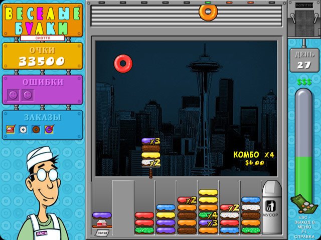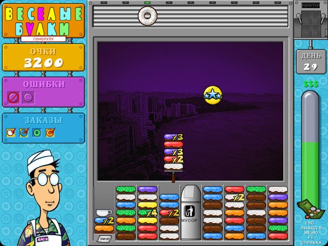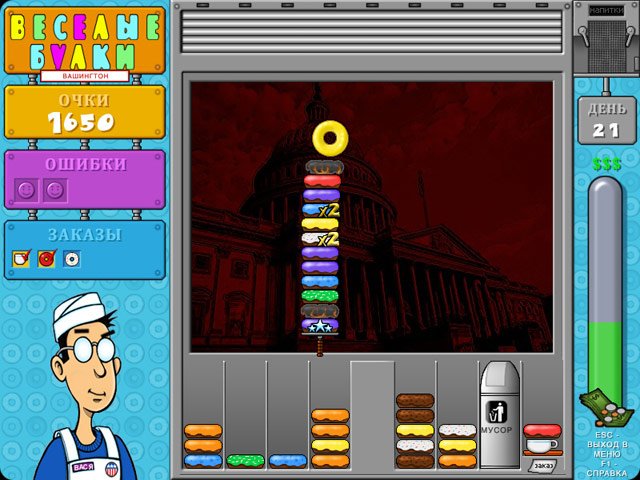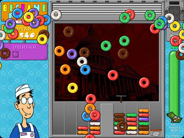 Геймплей Веселые булки прост, как рецепт бабушкиного печенья, но увлекателен, как сериал, который невозможно поставить на паузу. Ваша миссия — группировать пончики одного цвета и типа глазури, складывая их друг на друга. Чем выше и однороднее ваша башня, тем быстрее ее раскупают довольные клиенты, и тем больше звонкой монетки капает в вашу копилку. Но будьте начеку! Среди аппетитных десертов могут затесаться подгоревшие экземпляры, которые способны испортить всю партию. Их нужно либо избегать, либо хитроумно изолировать, иначе ваша пекарня превратится в пекарню... провалов. В игре есть два режима: "Карьера", где вы будете проходить десятки уровней, открывая новые рецепты и украшения для своей витрины, и "Аркада" для тех, кто хочет просто расслабиться и посоревноваться в мастерстве без лишнего давления.