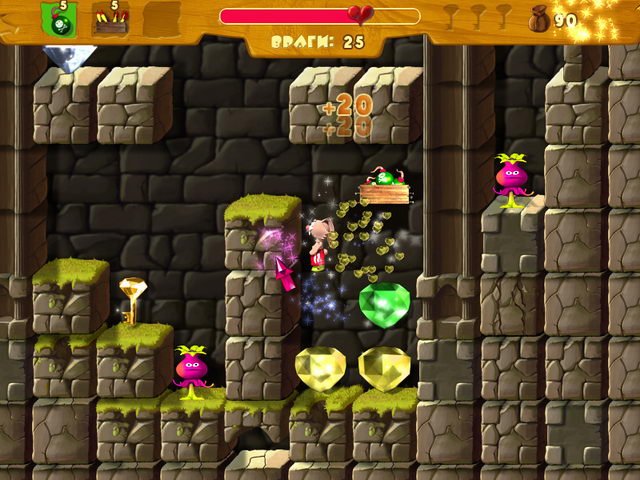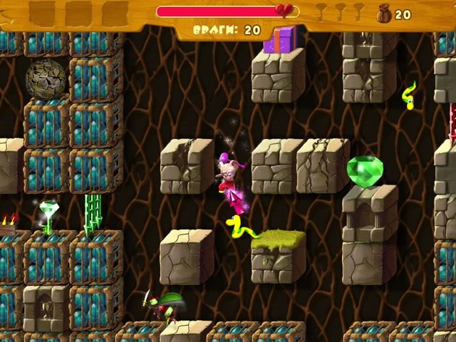 Геймплей Волшебных приключений Кролика — это идеальный микс простоты и увлекательности для всей семьи. Вы управляете нашим отважным зайцем с помощью клавиатуры или мышки, прыгая по платформам, исследуя зловещие подземелья Черного замка и расколдовывая бабочек, которые, как оказалось, являются ключом к свободе всех зачарованных лесных жителей. Главная цель — собрать все яблоки на своем пути, ведь они восстанавливают жизненные силы, без которых вы рискуете превратиться в очередную статую в коллекции злого волшебника. Эта детская аркада отлично развивает реакцию и логическое мышление, предлагая игрокам решать простые головоломки и находить оптимальные маршруты через лабиринты. Это не просто игра, это тренировка для будущих героев!