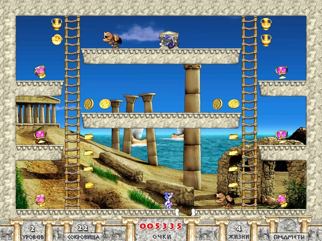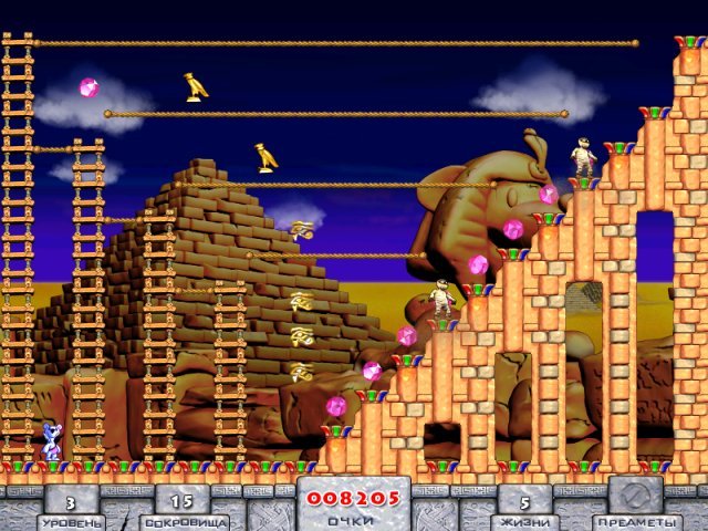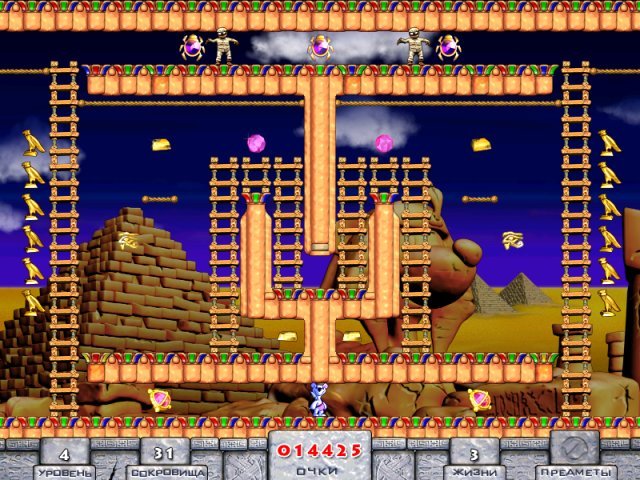 Snowy: Treasure Hunter — это не просто сбор золотых монеток. Это интеллектуальный вызов в яркой мультяшной упаковке! Вам предстоит исследовать запутанные уровни, напоминающие лабиринты древних пирамид и рыцарских замков, чтобы собрать все сокровища. Но будьте осторожны: повсюду шастают кровожадные монстры, которые мечтают превратить Снежка в медвежий обед. К счастью, наш герой не привык сдаваться. Используя свою природную хитрость (и полезные бонусы, спрятанные на уровнях), вы сможете перехитрить врагов, заманив их в ловушки или временно обездвижив их. Геймплей напоминает культовую Lode Runner: бегайте по лесенкам, ройте ямы под ногами монстров и продумывайте каждый шаг, ведь одна ошибка — и ваша экспедиция закончится раньше времени.