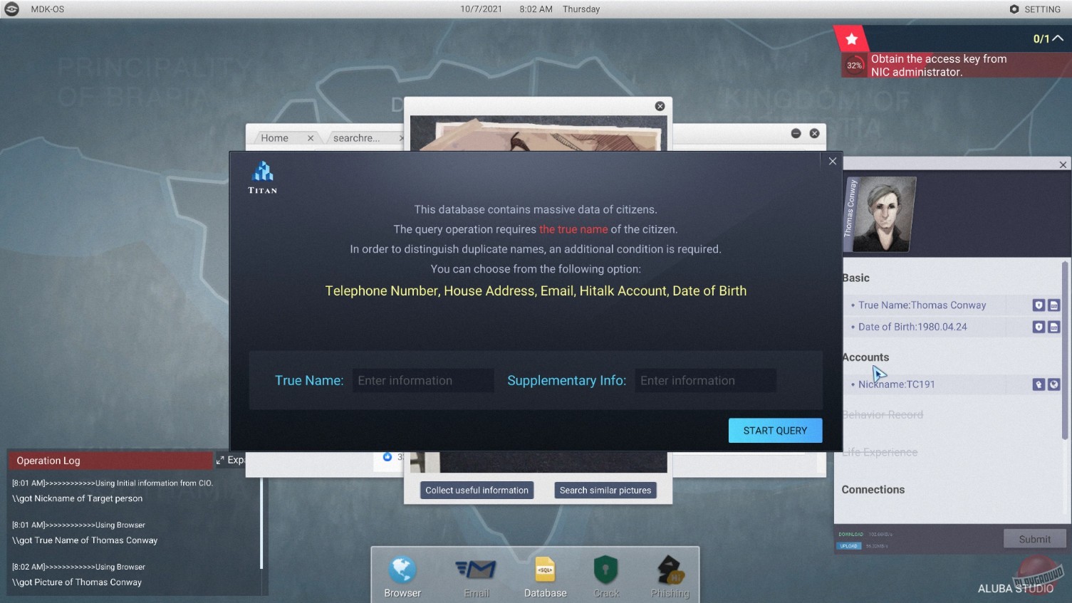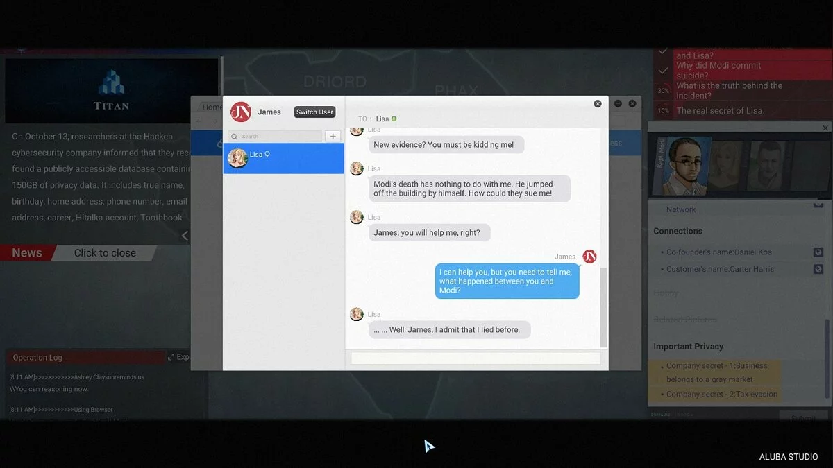 Геймплей Cyber Manhunt — это как собирать пазл из чужих секретов. Вам предстоит анализировать огромные массивы данных: социальные сети, банковские выписки, переписки, записи с камер наблюдения. Нужно найти связи между людьми, вычислить пароли (спойлер: часто это "123456" или имя домашнего питомца), используя методы социальной инженерии и логику. Каждая миссия — это новая история о кибернасилии, коррупции или нарушении конфиденциальности, основанная на реальных проблемах нашего времени. Вы не будете тыкать в кнопки, имитируя взлом; здесь все строится на вашем уме и способности видеть картину целиком. Это не экшен-хакерство в стиле Голливуда, а медитативный, но напряженный процесс расследования, где каждая деталь имеет значение.