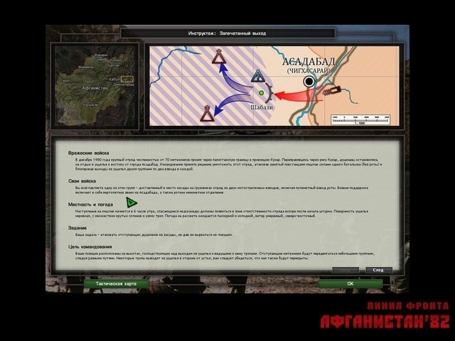 Линия фронта. Афганистан – это игра в культовой тактической серии Combat Mission целиком посвящена последней войне Советского Союза. 30 миссий, основанных на реальных событиях Афганской войны 1979-1989 годов. Игроку предстоит решать самые разные боевые задачи — зачистка кишлаков, охрана караванов, штурм и удерживание контролирующих высот, прочесывание «зелёнки». Для игры было изготовлено свыше 100 новых моделей, полностью переработан тактический баланс — новая техника, новые типы соединений. В игре задействовано три основных стороны: Советская армия, войска Демократической республики Афганистан и силы моджахедов.